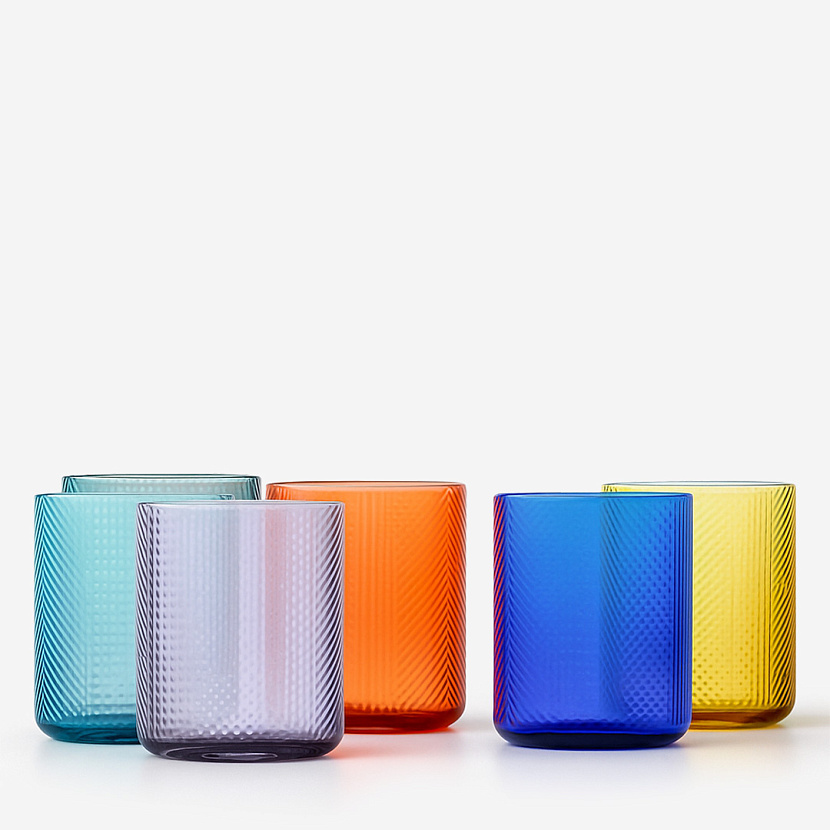 Набор стаканов Kokhi, в комплект входит шесть предметов разного цвета. Изделия изготовлены из фактурного выдувного стекла.