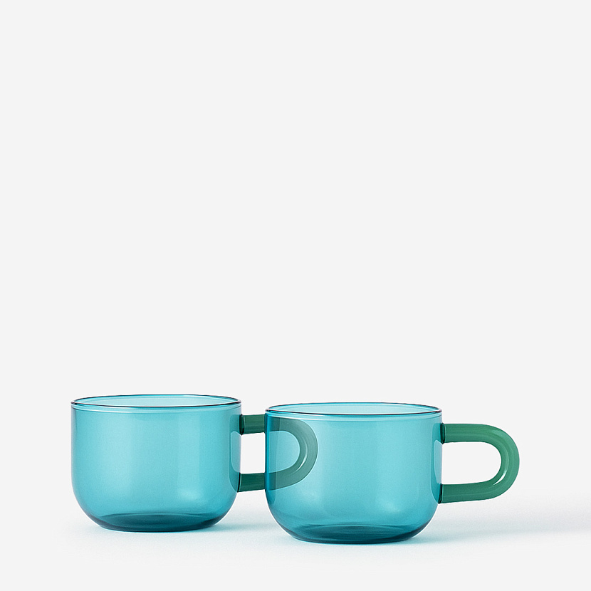 Набор из двух кофейных кружек Coffee&T. Изготовлены из выдувного стекла тёмно-бирюзового цвета. Яркие изделия будут радовать вас дома или в офисе. Дизайн разработан Астрид Лульо (Astrid Luglio) специально для Ichendorf.