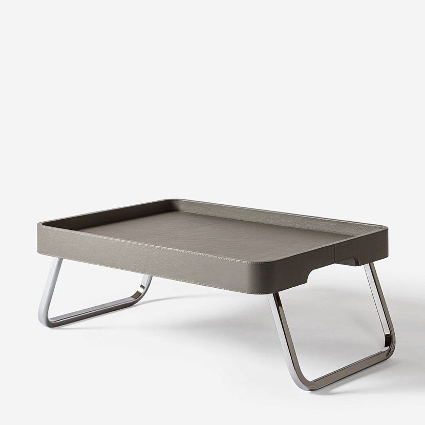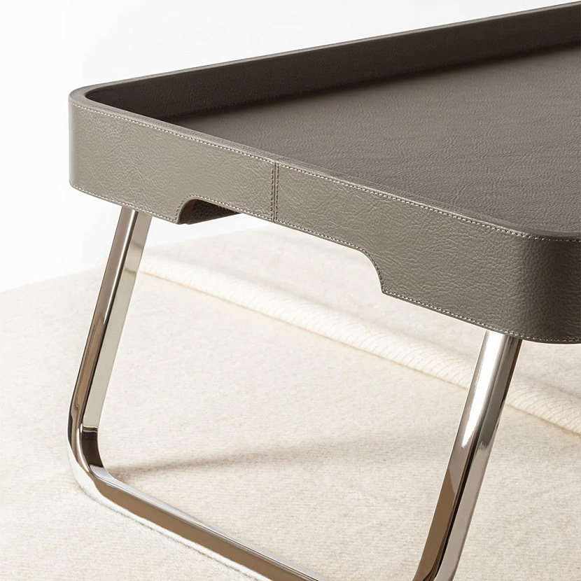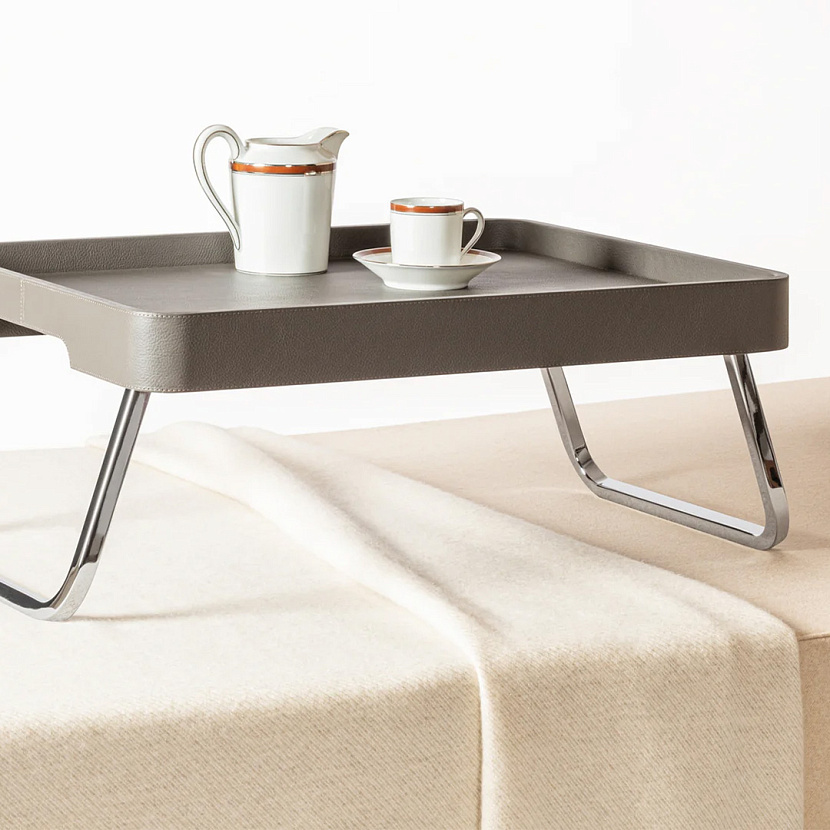 Поднос Giobagnata из коллаборации Poltrona Frau. Обтянут кожей оттенка Seppia, ножки изготовлены из хромированного металла. Универсальный аксессуар, который можно использовать для сервировки или хранения.