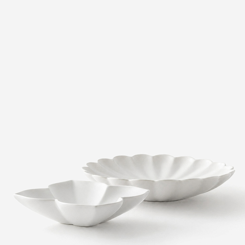 Набор посуды Flower, в комплект входят две небольшие сервировочные тарелки. Изделия изготовлены из фарфора с матовым покрытием. Лаконичный дизайн, интерпретирующий форму цветочного бутона, порадует ценителей оригинальных и стильных вещей.