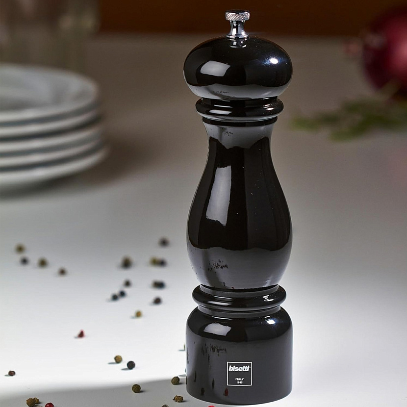 Мельница для соли и перца Bisetti серии Florence. Выполнена из дерева, оснащена долговечным стальным механизмом. Высота 22 см делает её универсальным решением как для дома, так и для профессионального использования.