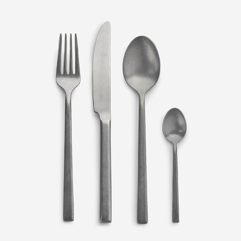 Столовые принадлежности дополняют коллекцию керамики, повторяя в своей форме её изящные и тонкие линии.