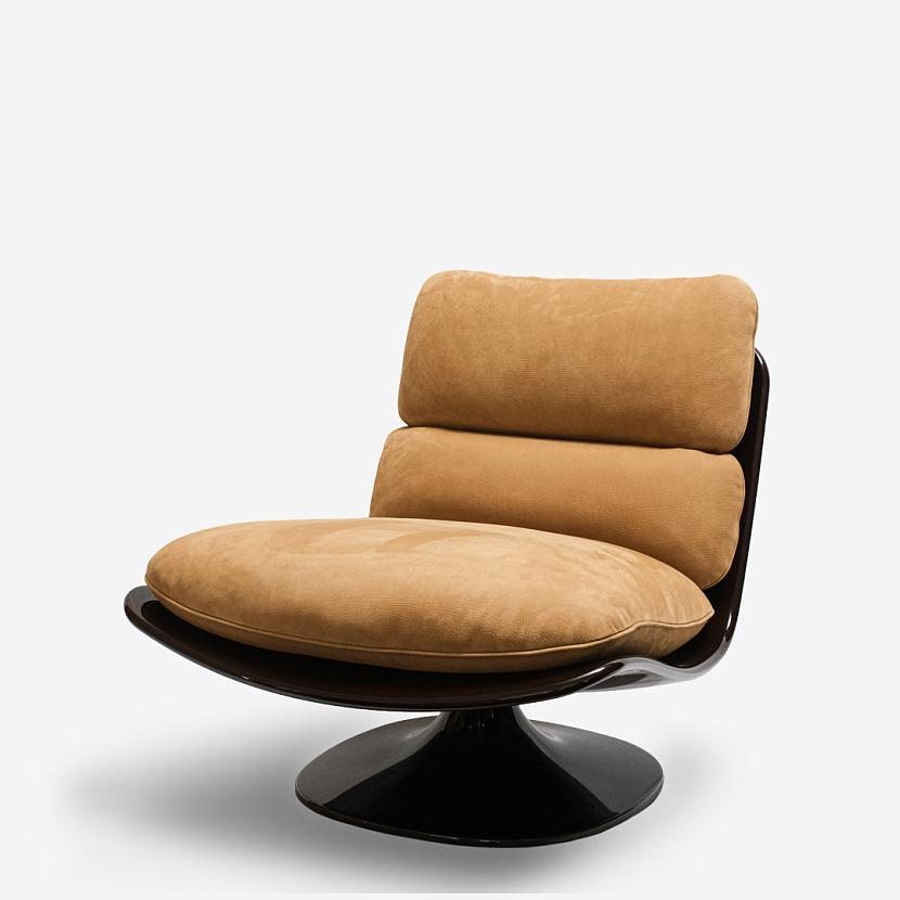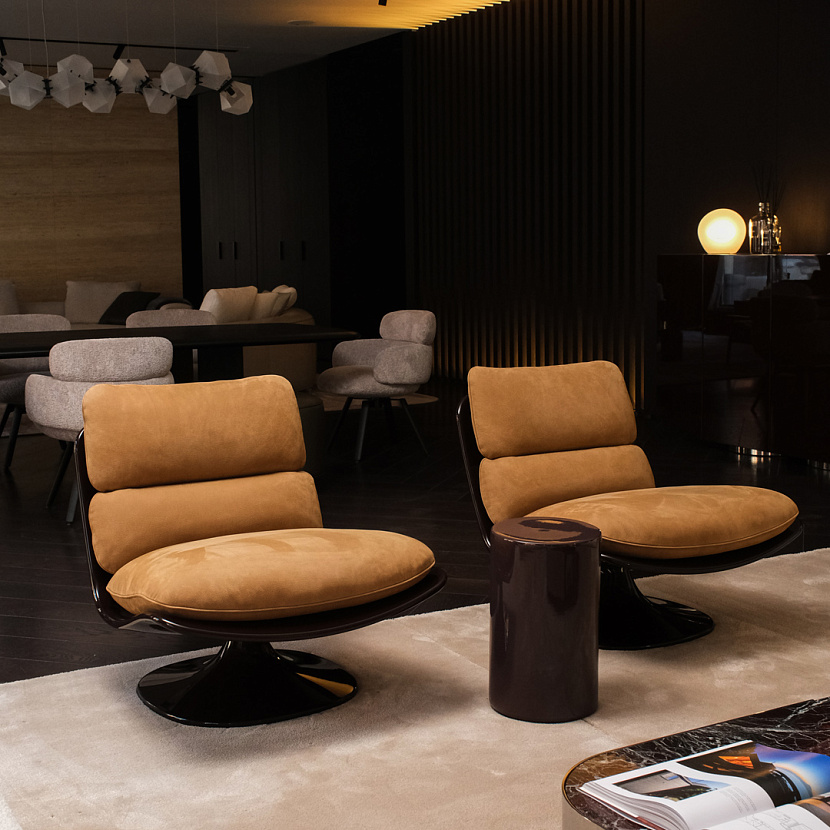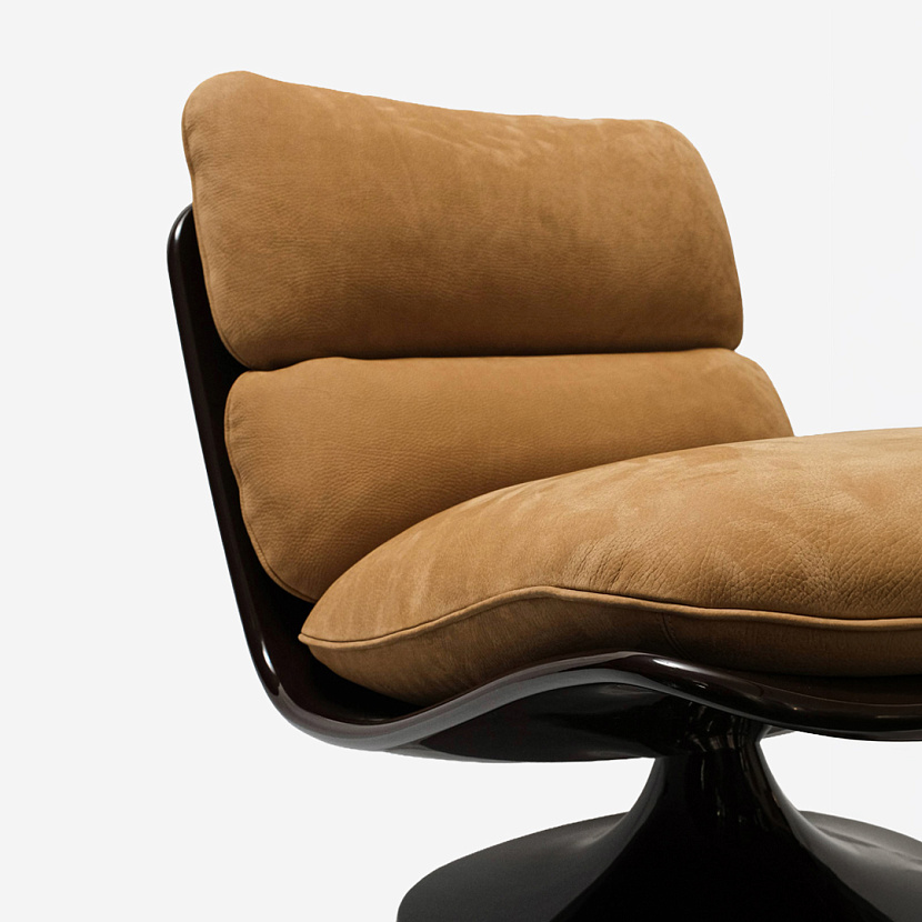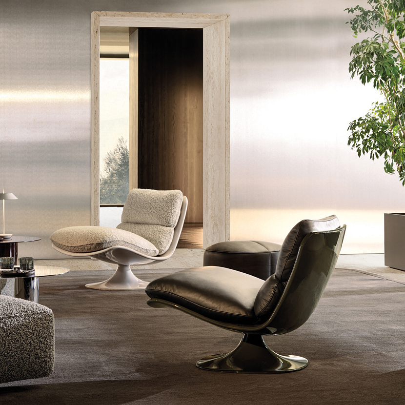 Уютное и современное кресло Pattie вдохновленное1970-ми годами. Подушки выполнены из кожи, а поворотное металлическое основание покрыто лаком.