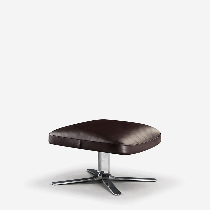 Элегантная металлическая база с четырьмя лучами подчеркивает графичность конструкции и визуально облегчает объем сиденья. Оттоманка может использоваться как самостоятельный элемент или как дополнение к креслу Blake-Soft, формируя полноценную lounge-композицию.