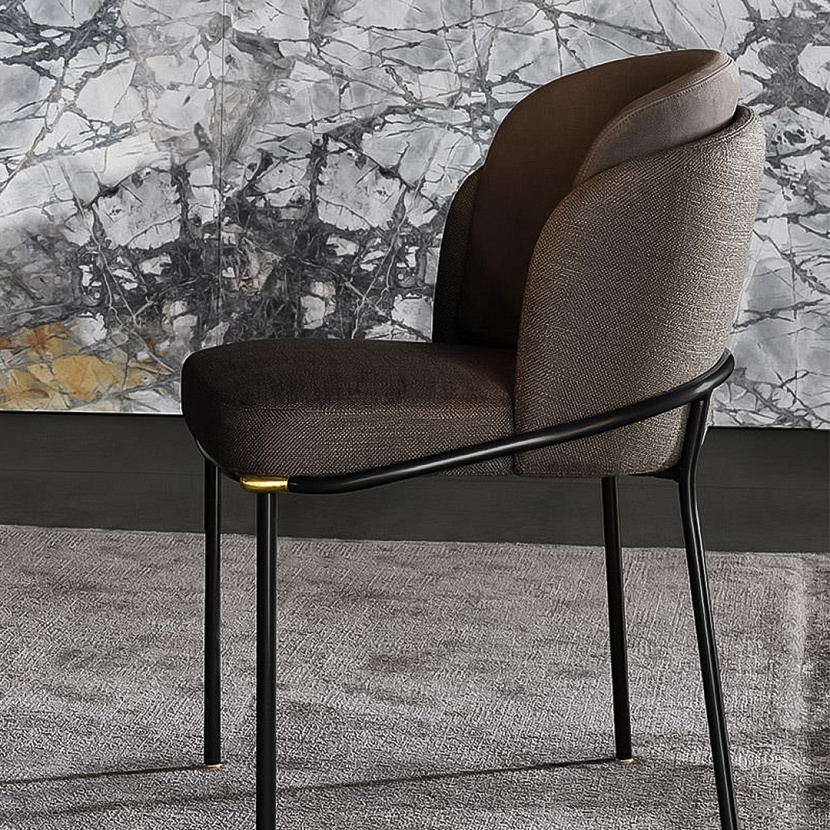 Обволакивающая спинка и мягкое сиденье обеспечивают комфортную посадку, а декоративные металлические кольца на соединениях добавляют изысканный акцент и подчеркивают ремесленное качество исполнения.