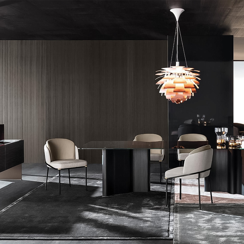 Стул Fil Noir Dining Chair — часть коллекции Fil Noir, созданной дизайнером Christophe Delcourt для Minotti. Модель отличается графичным силуэтом, сформированным тонкой металлической конструкцией, которая одновременно очерчивает форму и поддерживает сиденье.