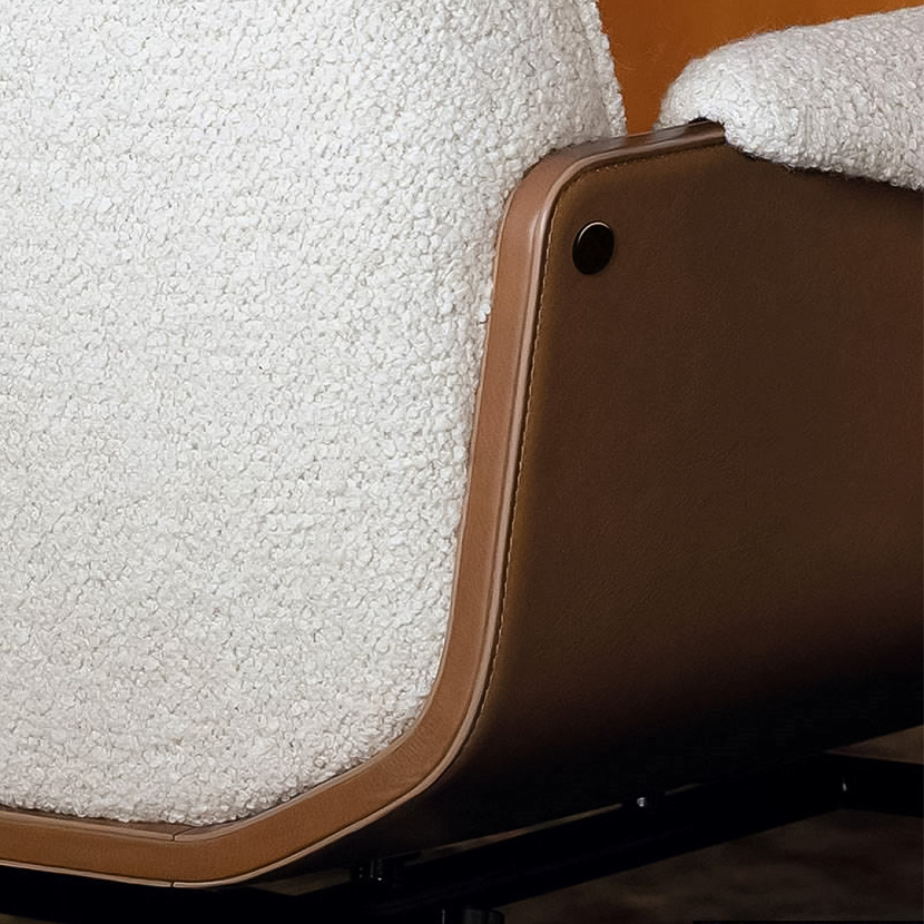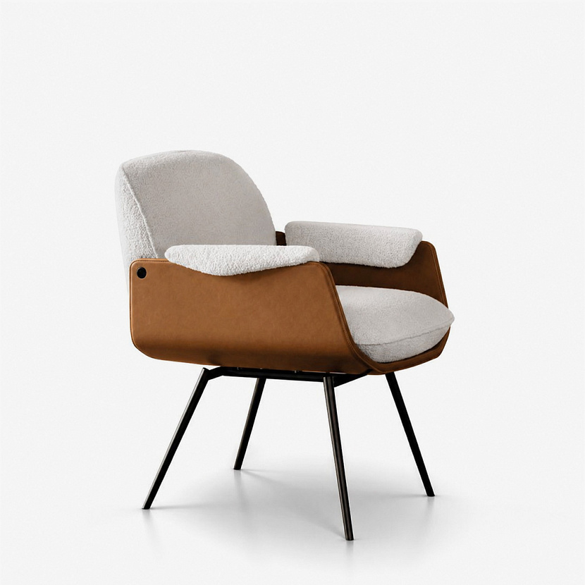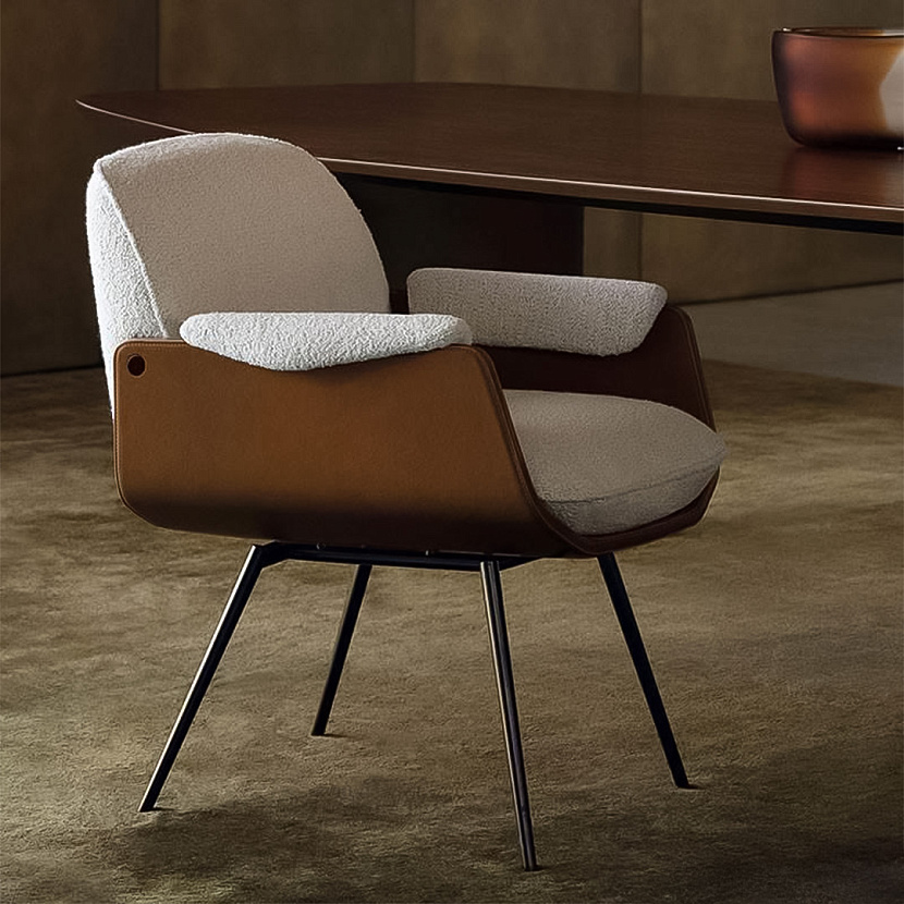 Цельный объем сиденья подчеркнут аккуратной декоративной прострочкой, которая усиливает архитектуру формы и визуальную глубину обивки. Благодаря мягким линиям и сбалансированным пропорциям модель легко интегрируется в современные обеденные пространства.
