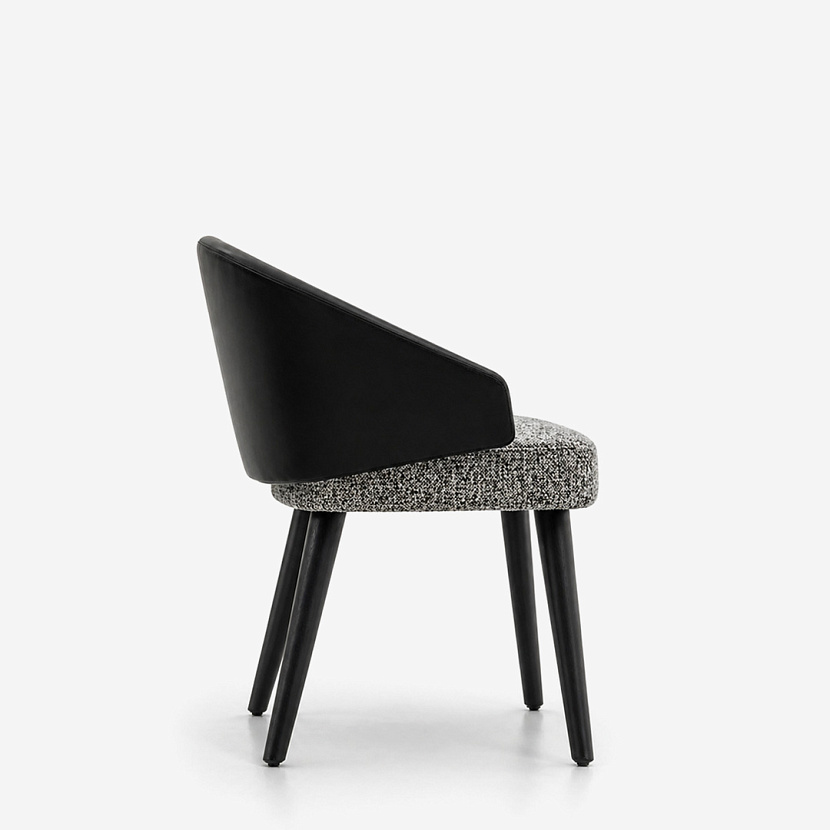Плавная линия спинки и сиденья образует цельный объем, подчёркнутый лёгкой конструкцией основания. Стул представлен в двух версиях — без подлокотников и в версии Dining Little Armchair с подлокотниками.