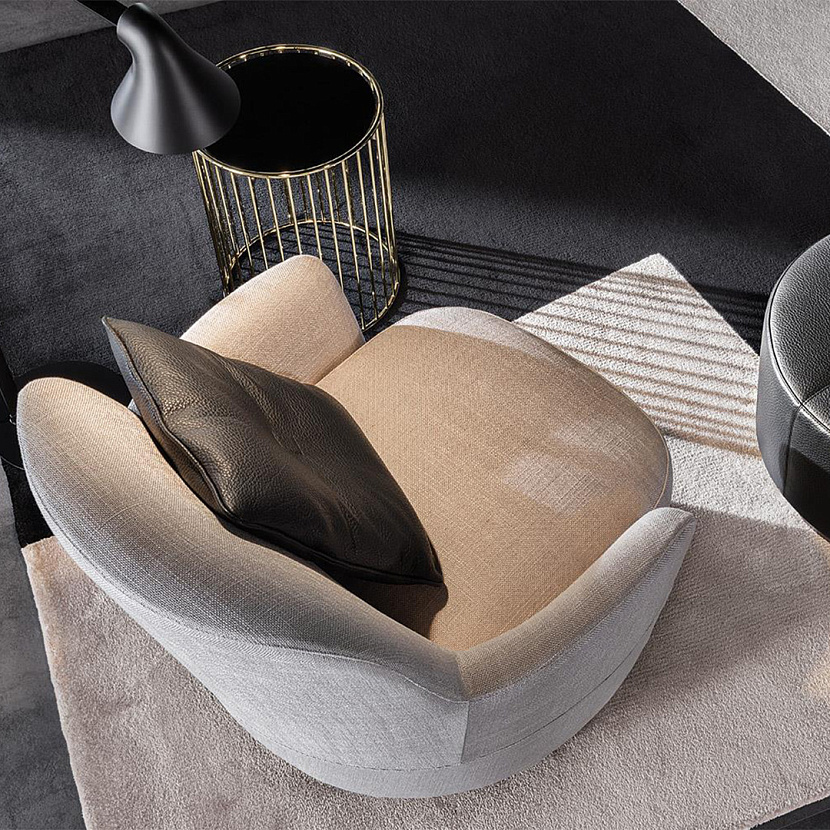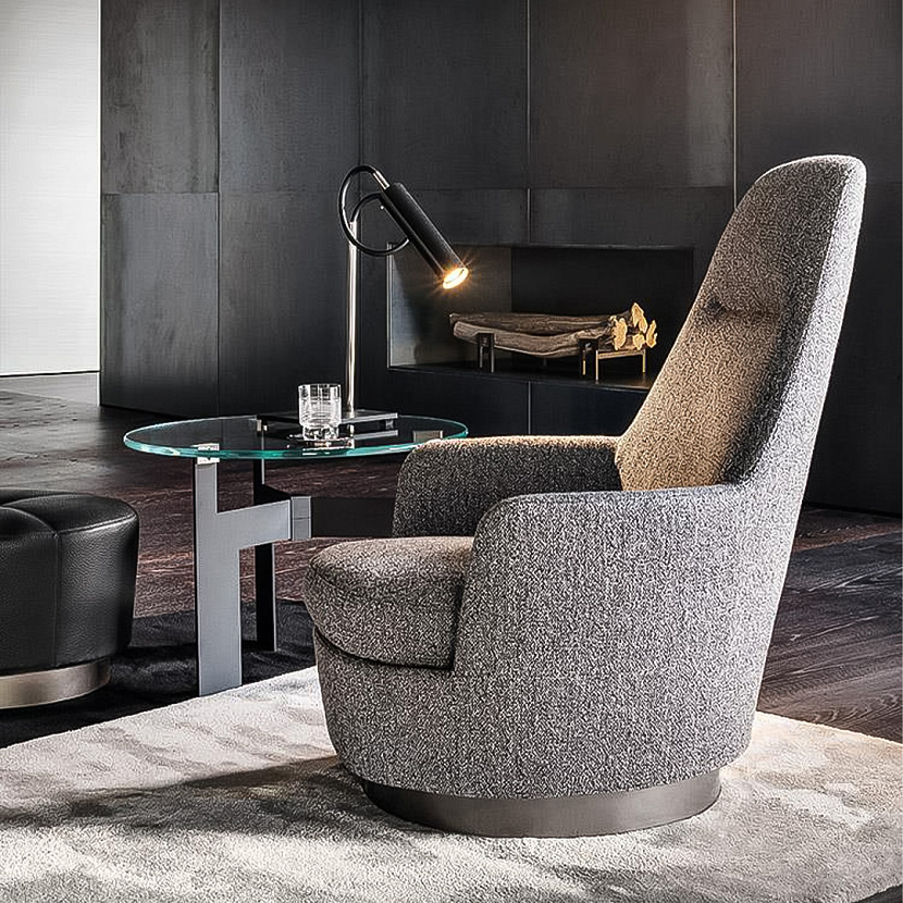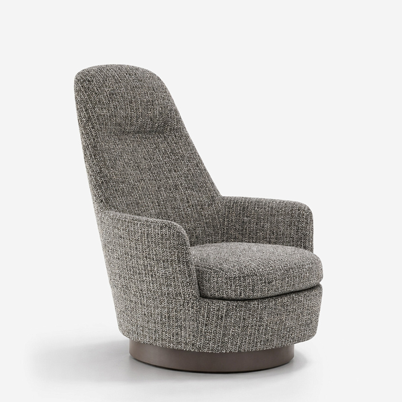 Кресло Jacques Bergère отличается выразительной высокой спинкой и мягкими обволакивающими формами. Дизайн Rodolfo Dordoni сочетает винтажную эстетику 1950-х годов с современными пропорциями и высоким уровнем комфорта. Плавная линия спинки формирует уютную посадку, а декоративная строчка подчеркивает мягкую архитектуру модели. Кресло доступно в версиях с фиксированным основанием или с поворотной базой swivel.