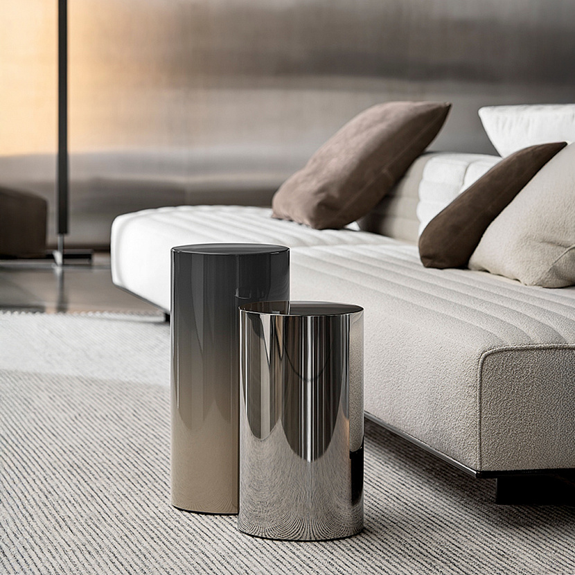 Pilotis — серия лаконичных приставных столиков-пьедесталов. Стол изготовлен из металла.