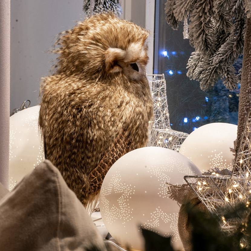 Фигурка совы из натуральных перьев станет декором для создания новогодней атмосферы. Комбинируйте с другими игрушками, чтобы создать композицию.