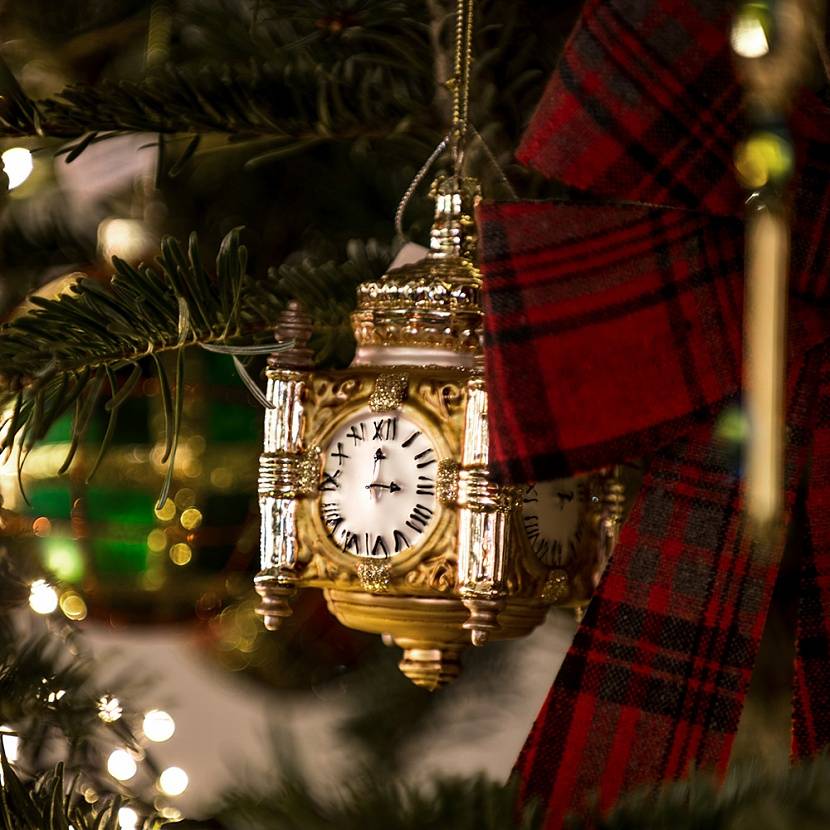 Набор из 2-х новогодних елочных украшений. Ёлочные игрушки в виде часов напомнят о волшебных мгновениях, когда под звон бокалов бьют куранты и загадываются желания.