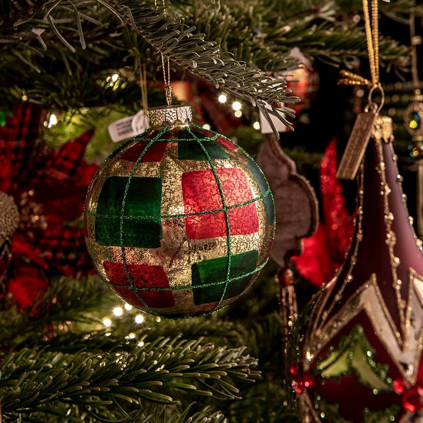 Набор из 2-х новогодних елочных украшений с рождественским узором тартан.