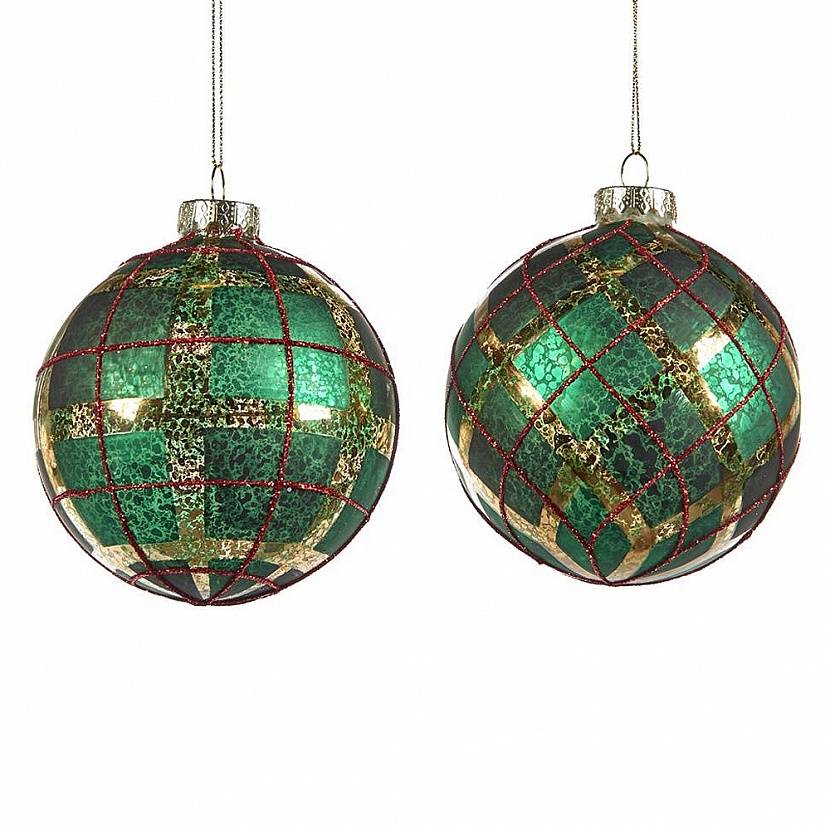 Набор из 2-х новогодних елочных украшений с рождественским узором тартан.
