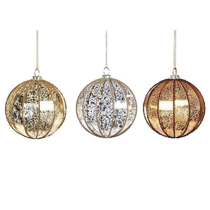 Набор из 3-х новогодних елочных украшений. Стеклянные шары с необычной фактурой и декором с блёстками.
