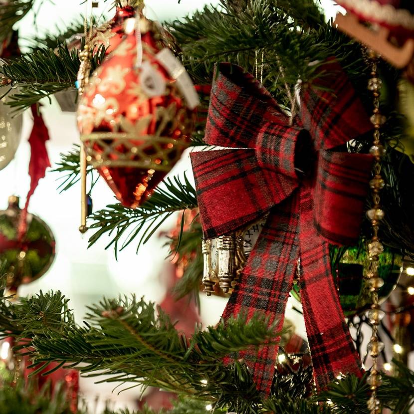 Набор из 6-ти новогодних елочных украшений в виде банта с рождественским узором тартан.