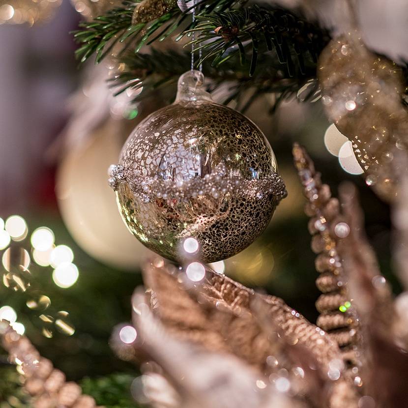 Набор из 4-х новогодних елочных шаров из стекла, поверхность имитирует водные разводы. В качестве декора использованы жемчужные бусинки.