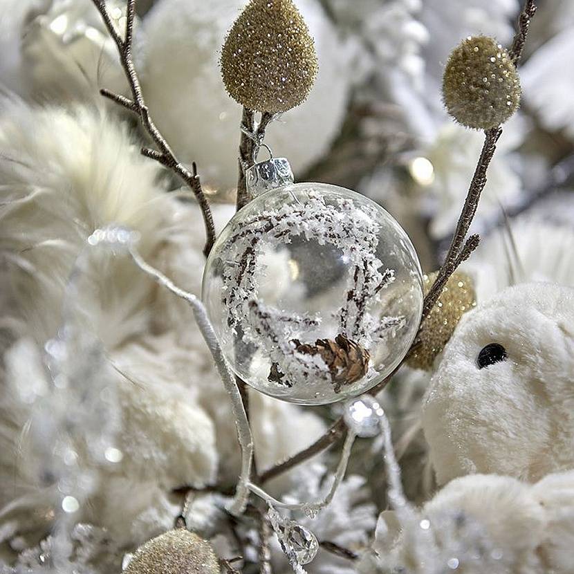 Набор из 6-ти новогодних елочных украшений. Шар напоминает льдинку, в которой замёрзли ветки дерева.