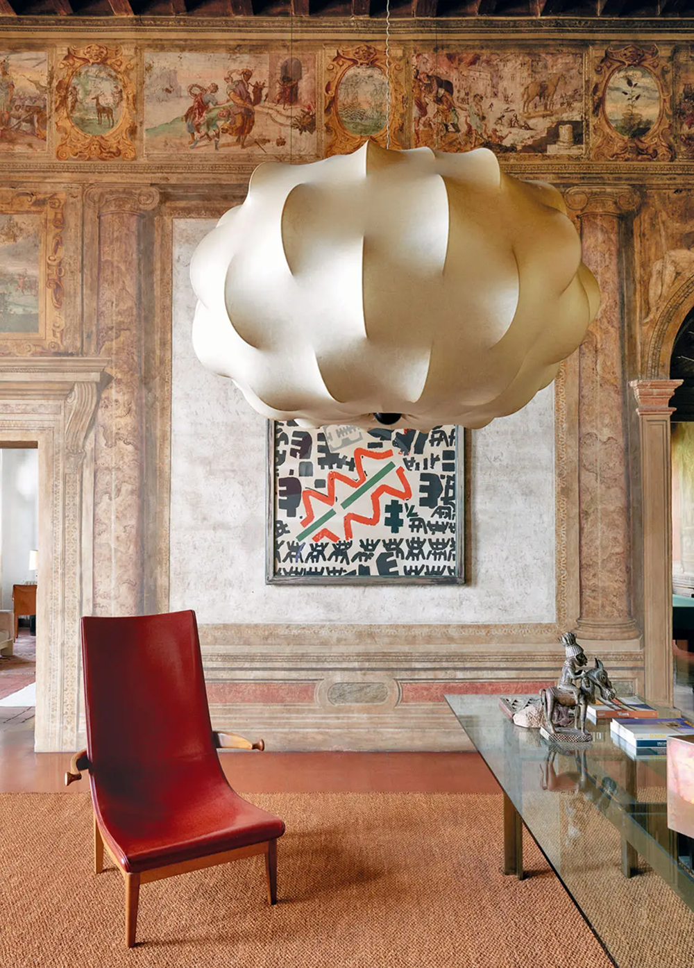 Люстра работы Тобиа Скарпы и лаунж-кресло Эрика Гуннара Асплунда. На стене — картина Джузеппе Капогросси.