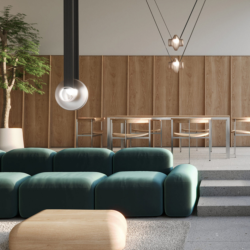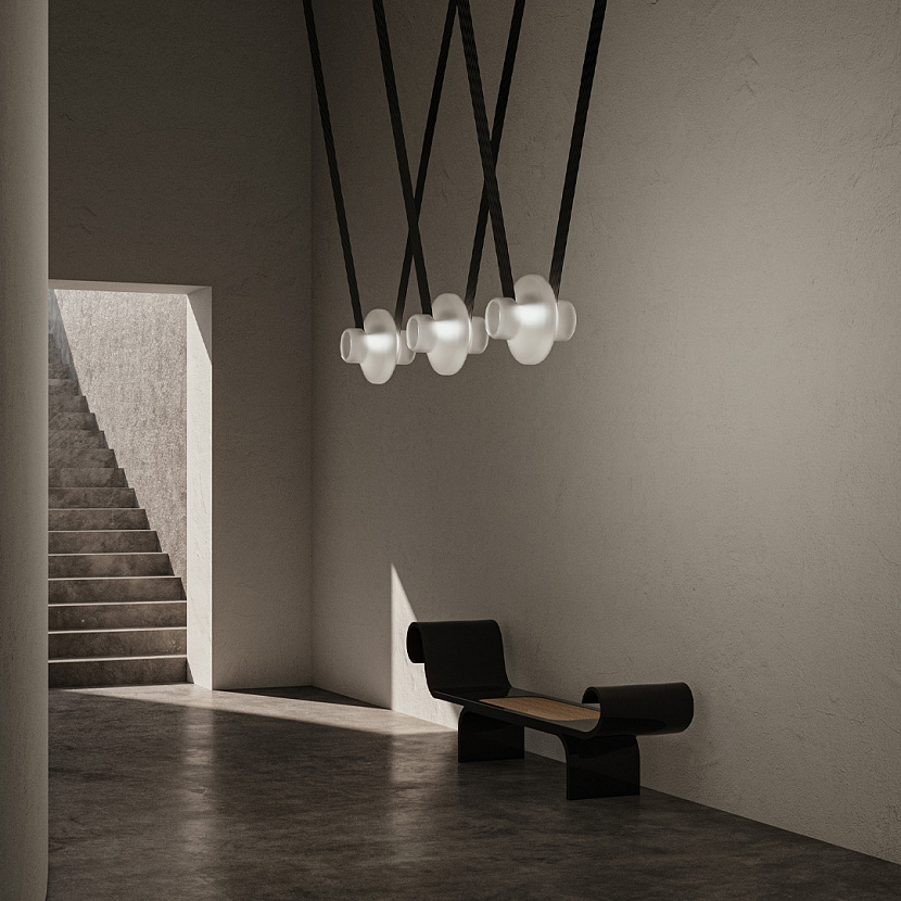 Коллекция État-des-Lieux — инновационная система освещения с гибкой токопроводящей лентой, позволяющей создавать уникальные геометрии и центральные световые акценты в пространстве. Ручные стеклянные сферы в четырёх цветах и разных отделках дополняют модульность и дают возможность адаптировать светильник под интерьер. Изготовленные в Канаде из перерабатываемых материалов, светильники сочетают эстетику, технологичность и экологичность, доставляясь по всему миру с углеродно-нейтральной логистикой.