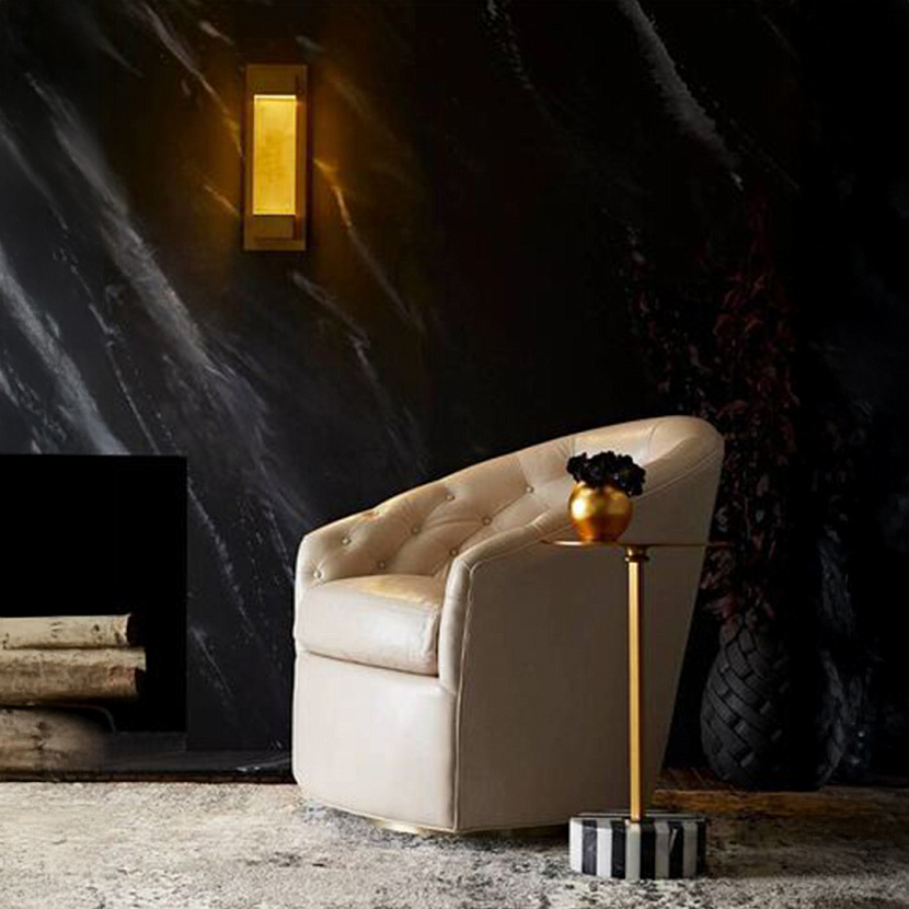 Бра Charlie от американского бренда Arteriors. Изготовлено из нержавеющей стали в отделке «состаренная бронза», рассеиватель — из матового стекла. Светильник в индустриальной эстетике придаст интерьеру современный и актуальный характер.