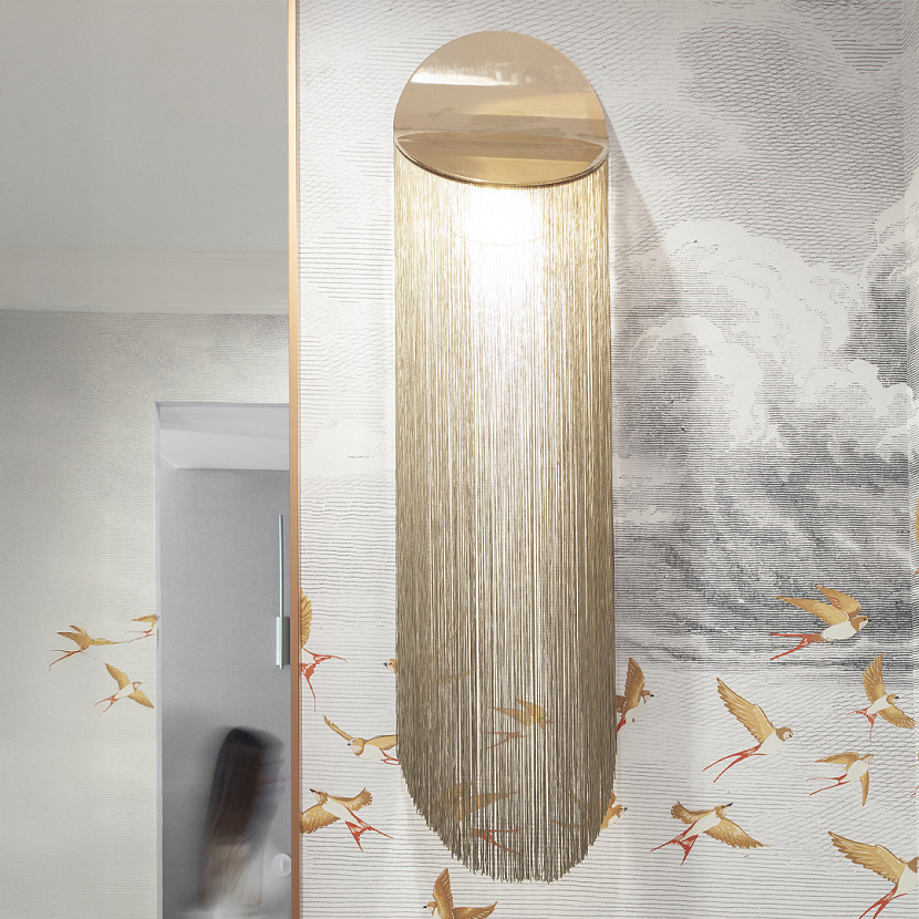 Коллекция Cé от darmes переосмысливает классический приём с бахромой, превращая её в световой элемент, вдохновлённый мифическим образом Кекропса. Текучие линии бахромы создают мягкую атмосферу и эффект движения, а центральный диск отражает свет и лица, добавляя символическую глубину. Светильники из перерабатываемых материалов, собранные в Канаде, доступны в разных конфигурациях и идеально подходят для изысканных интерьеров.
