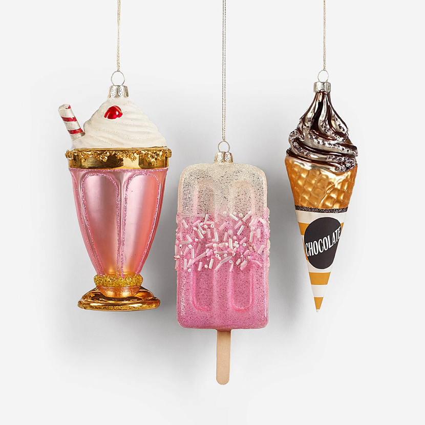 Набор из трёх ёлочных игрушек Candy Shop. Изделия раскрашены вручную. Предметы новогодней коллекции Goodwill создадут праздничное настроение и уютную атмосферу.