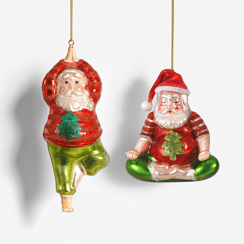 Набор ёлочных игрушек Yoga Santa от голландского бренда Vetur. В комплект входят два украшения.
