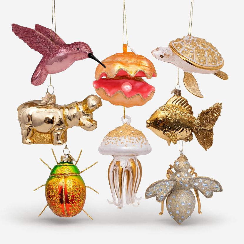 Набор ёлочных игрушек серии Terra Flora от голландского бренда Vondels. В набор входят 8 украшений в виде птиц, животных и обитателей подводного мира.