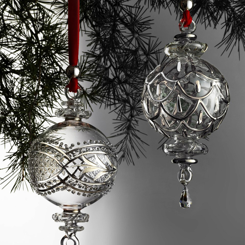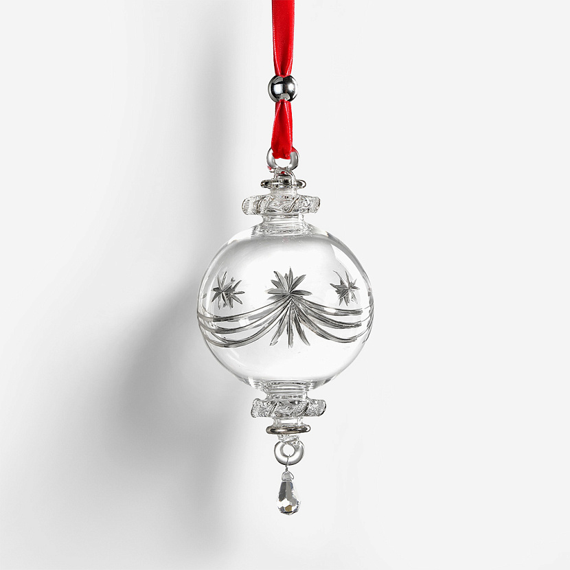 Новогодний ёлочный шар Stella Cometa от итальянской фабрики Greggio. Игрушка изготовлена из стекла с серебряным узором, подвешивается на бархатную ленту.