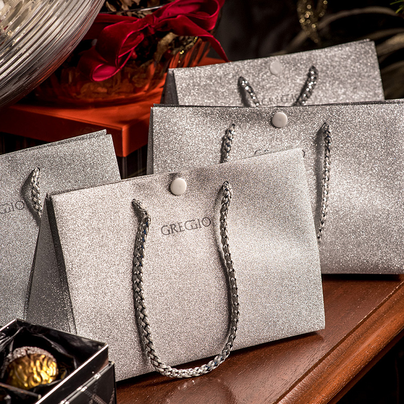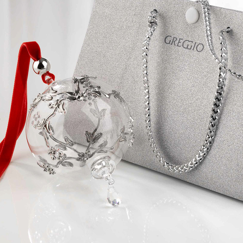 Шар представлен в блестящей серебристой сумочке Greggio.