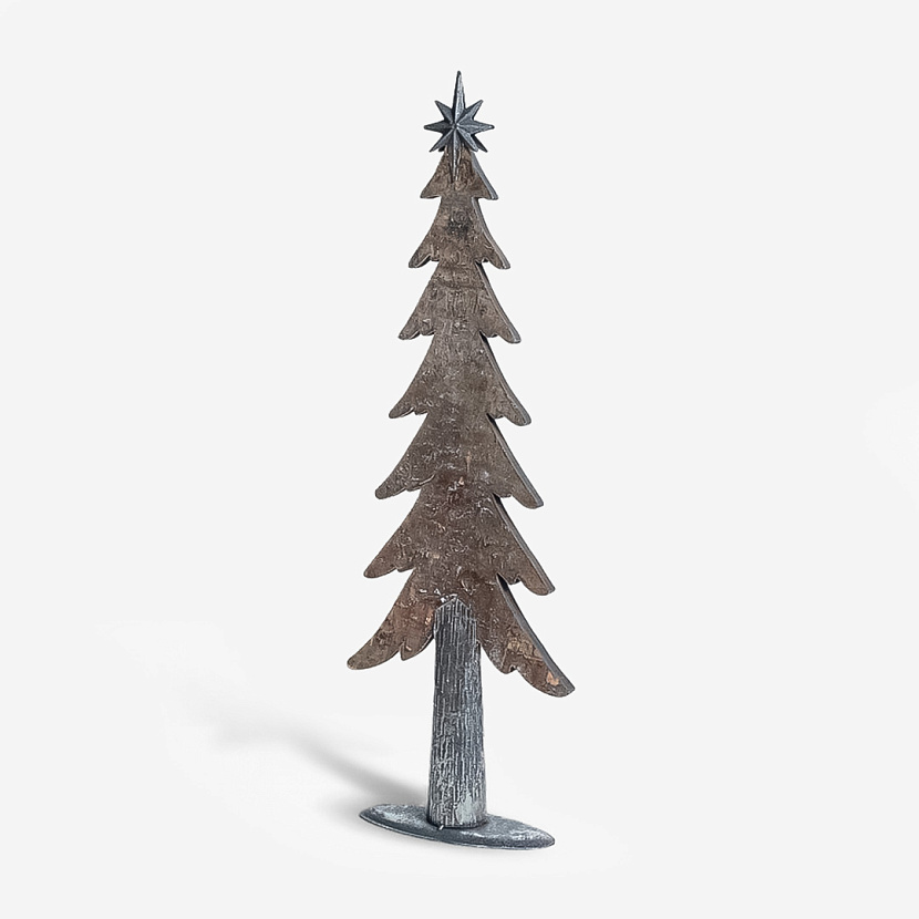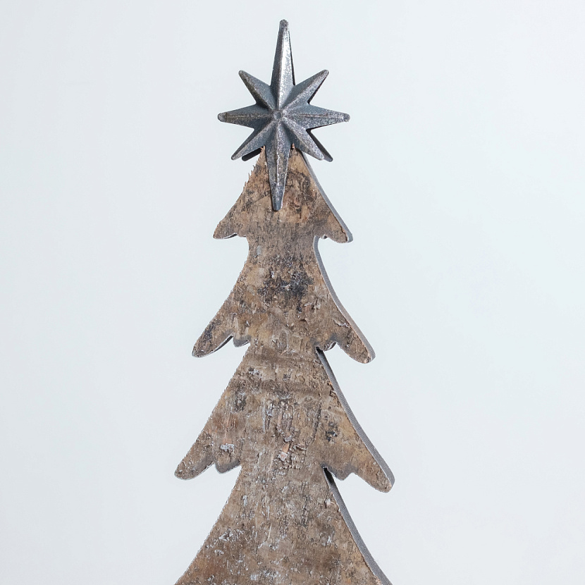Декоративная ель Metal Bark Xmas Tree от Goodwill. Ствол и звезда изготовлены из металла, основная часть ели с ветками вырезана из дерева. Оригинальный праздничный декор создаст атмосферу зимней сказки в интерьере. Предметы коллекции Goodwill станут отличным подарком для родных и близких на Новый год или Рождество.