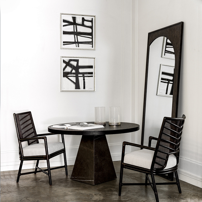 Постер с изображением чёрно-белой абстракции. Автор —британская художница Шарлотт Морган (Charlotte Morgan). Оформлено в лаконичную деревянную раму серебряного цвета.