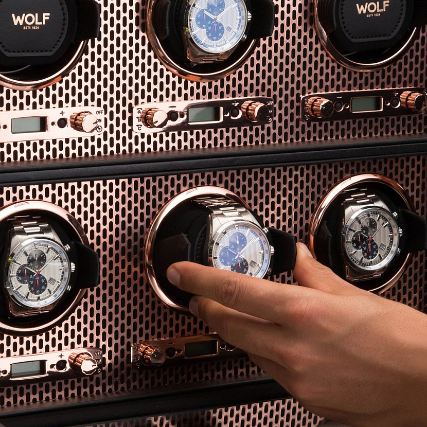 Виндер Axis с восемью модулями. Запатентованная технология считывания оборотов позволяет подзаводить часы необходимое количество раз в течение дня.