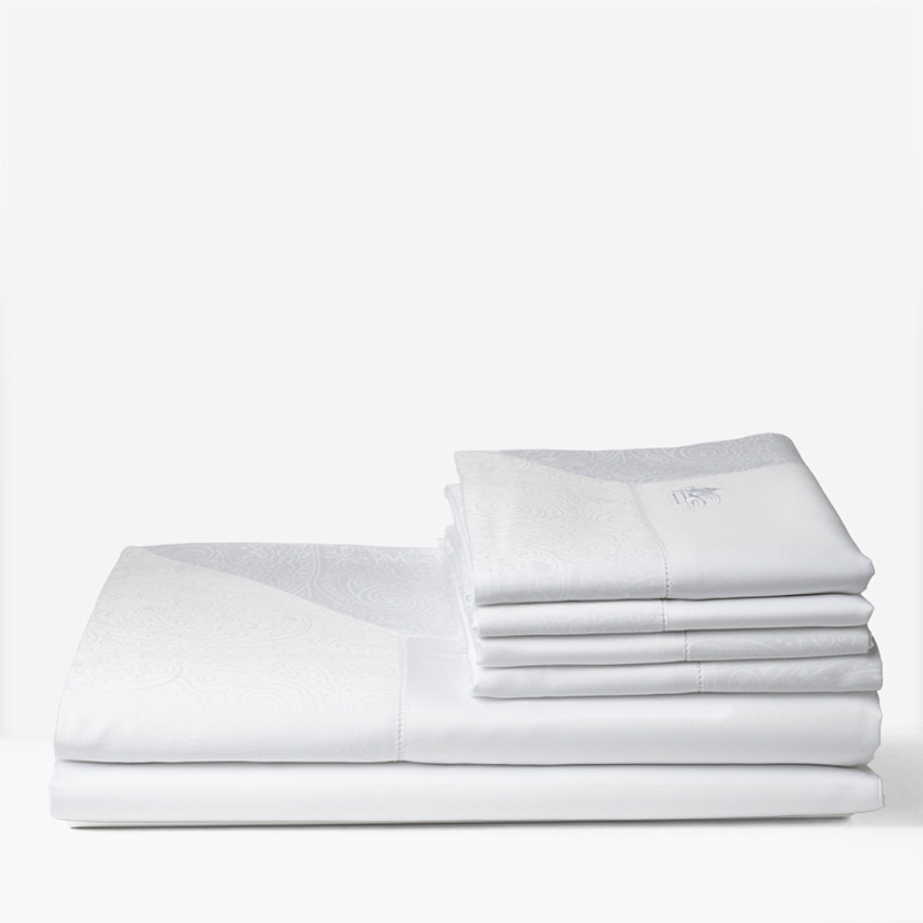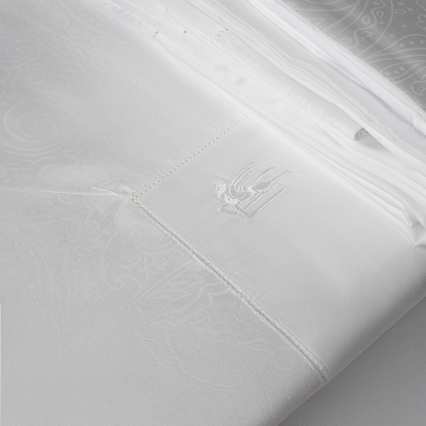Комплект постельного белья New Rene от Etro Home. Изделия из хлопкового сатина — материала, который будет радовать вас своей нежностью и гладкостью. Особую изысканность комплекту придаёт вышивка.