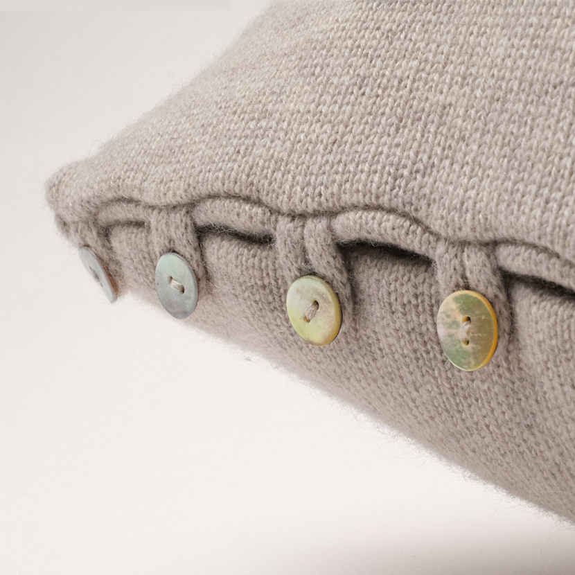 Подушка Cashmere в сером оттенке. Съёмная наволочка изготовлена из мягкого 100% кашемира и дополнена перламутровыми пуговицами. Классический дизайн гармонично впишется в разнообразие интерьеров